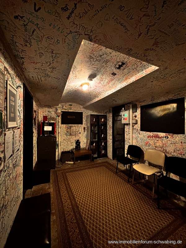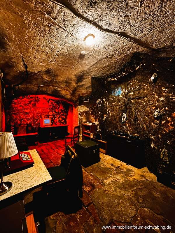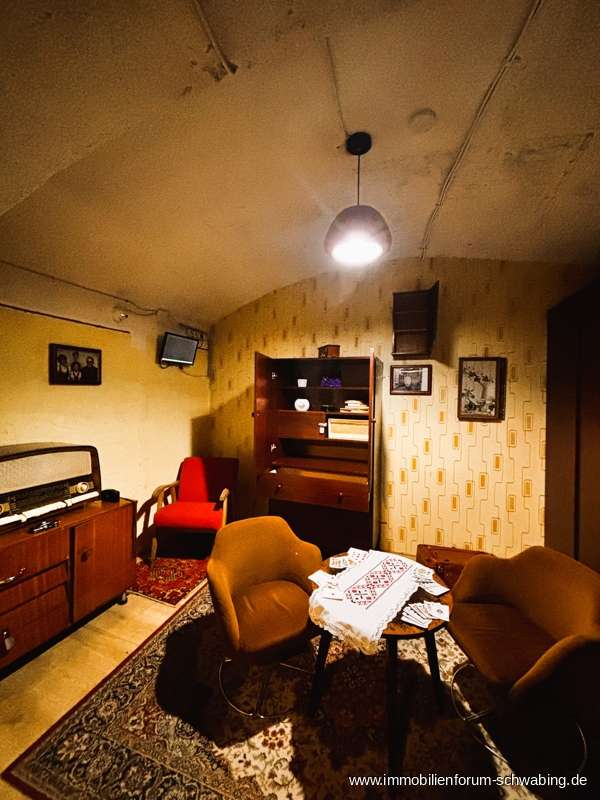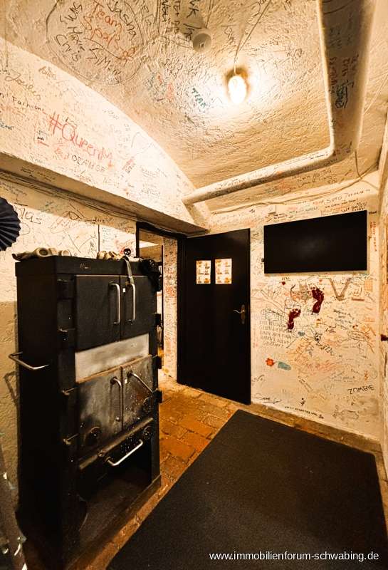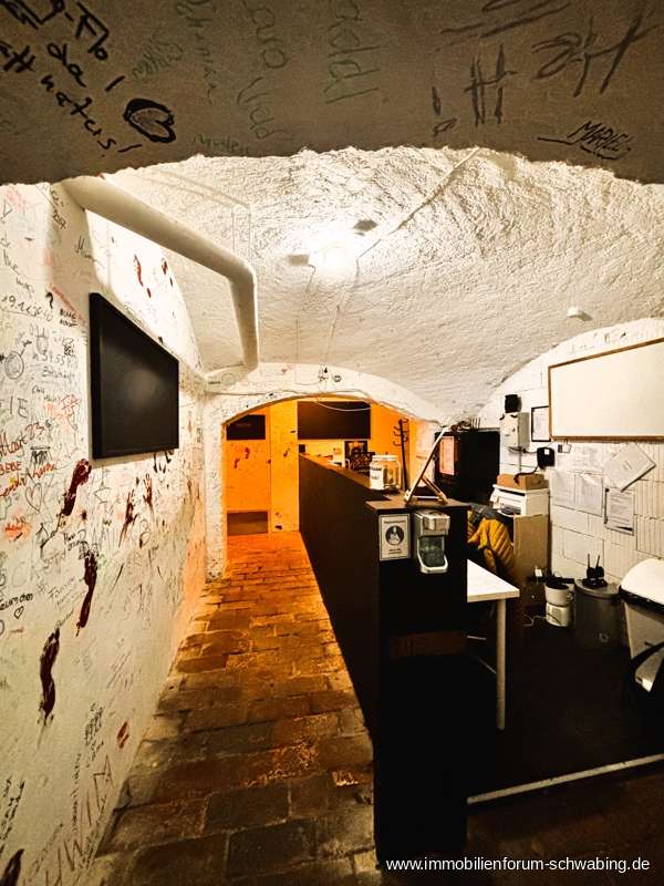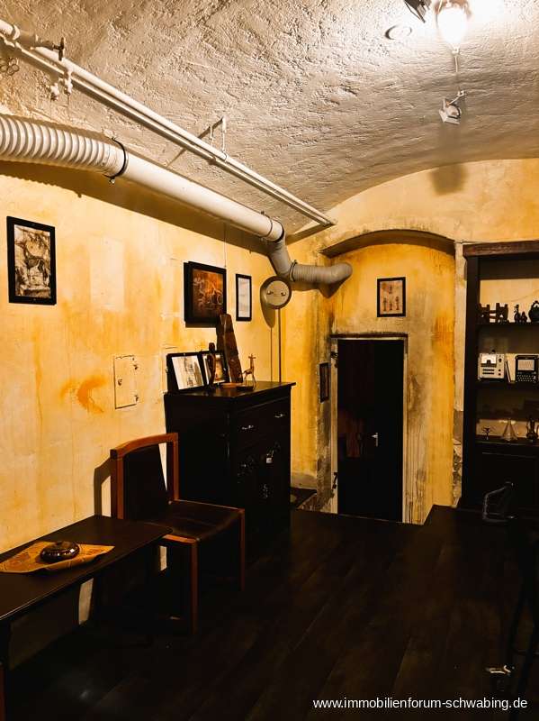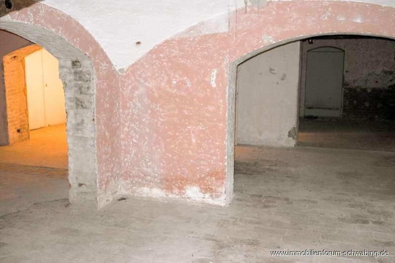 Zum Verkauf wird eine Gewerbefläche angeboten, die sich im Gewölbekeller in Souterrainlage befindet, der Ende des 19. Jahrhunderts erbaut wurde. Das darüber befindliche Gebäude wurde im Jahr 1954 neu aufgebaut. Die ursprüngliche Nutzung erfolgte als Keller, diese wurde im Jahr 1975 durch die Stadt München erweitert, auf Nutzung als Lager und Laden. Es folgten verschiedene gewerbliche Nutzungen, z. Bsp. als Antiquitätenladen mit Lager, als Galerie oder Dentallabor. Seit 2014 wird die Immobilie als Event-Abenteuer-Location genutzt. Da es einen neuen Betreiber geben wird, sind gegenwärtig Verhandlungen bezüglich eines neuen Mietvertrages, dann mit 15,00€/m² kalt, im Gange. Der ursprüngliche Grundriss wurde dem Konzept des jetzigen Mieters angepasst.