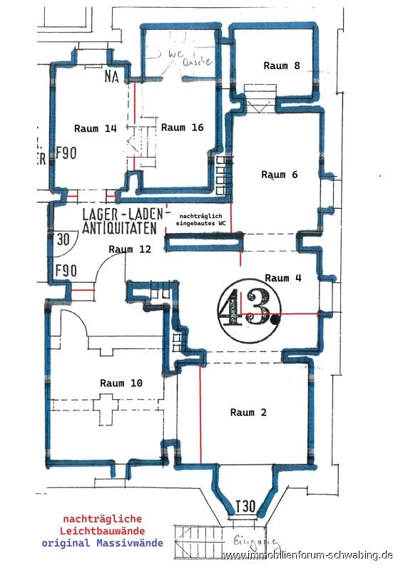 - Grundriss gegenwärtig durch Leichtbauwände angepasst