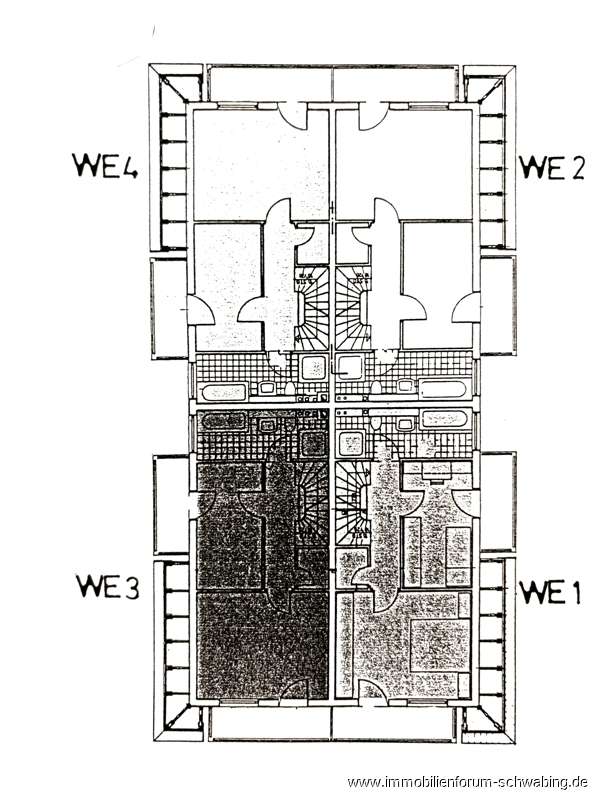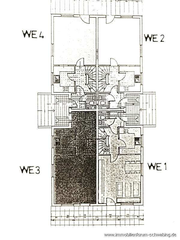 - aufgeteilt in 4 Reiheneckhäuser