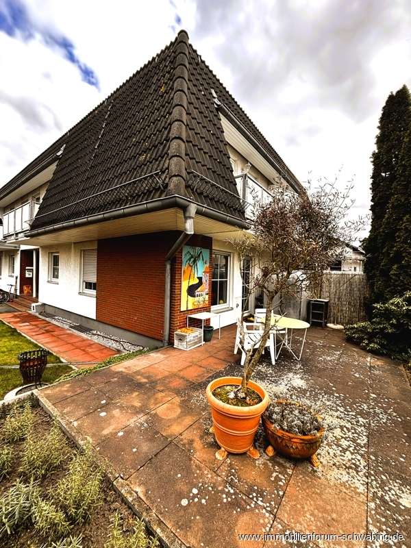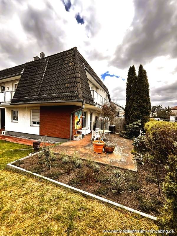 Zum Verkauf wird ein Reiheneckhaus angeboten, in einem Gebäude, das 1992 im Stil einer Landhausvilla errichtet wurde. Das Gebäude wurde in vier Eckhäuser aufgeteilt, die jeweils über eigene Hauseingänge und Terrassenbereiche verfügen. Die Wohnfläche von ca. 118 m² verteilt sich auf 3 Geschosse, die klassisch strukturiert sind. Im EG gibt es eine Diele, ein Gäste-WC, eine Küche inkl. Einbauküche, ein großes Wohnzimmer mit Zugang zur West-Terrasse und den Flur mit Treppe zu den obigen Etagen. Im OG befindet sich ein Bad mit Wanne und Dusche, ein großes Zimmer sowie ein kleineres Zimmer jeweils mit Balkonzugang. Zusätzlich gibt es eine kleine Abstellkammer. Der Flur führt die Treppe zum DG fort. Im DG ist ein weiteres Bad mit Dusche vorhanden sowie ein kleineres Zimmer als Abstellbereich und ein großes Atelierzimmer, welches als Schlafzimmer genutzt wird. Das gesamte Haus ist voll unterkellert, mit der Möglichkeit der Beheizung. Gegenwärtig wird der Keller mit 33 m² als Hobbyraum und einem kleinen Werkstattraum genutzt. Das Gebäude wurde in Massivbauweise errichtet und ist insgesamt sehr gepflegt, ebenso die zum Verkauf stehende Einheit. Die Ausstattung entspricht weitestgehend dem Standard bei der Errichtung. Das Grundstück hat eine Größe von 1700 m² und teilt sich auf in 400 m² gemeinschaftlich genutzte Rasenfläche, 1 Stellplatz pro Haus, gemeinschaftliche Gehwege und einen Mülltonnenstellplatz. Die restliche Grundstücksfläche verteilt sich auf die vier Reiheneckhäuser. Diese Immobilien eignet sich hervorragend für Familien oder Paare, die angenehm wohnen möchten, mit Nähe zur Großstadt, aber auch einem gewissen Abstand dazu.
